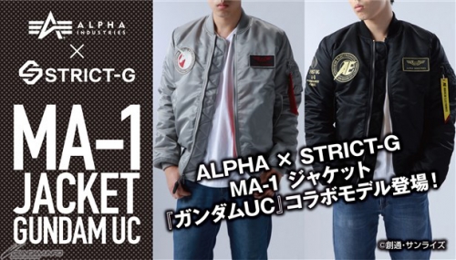 ガンダムの世界観を取り入れたアパレルショップ「STRICT-G」では、11月3日(金・祝)より『機動戦士ガンダムUC』とミリタリーブランド“ALPHA”の代表的アイテムであるフライトジャケット「MA-1」とのコラボレーションモデル2種の発売が決定し、それに先立ち 「STRICT-G Online Store」にて本日10月24日(火)13:00より予約受付がスタートする。