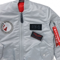 両デザインとも左胸には面ファスナー仕様で取り外しができるALPHA社のワッペンを配置。ワッペンを外すとその下に機体ナンバー「RX-0」の文字が現れるギミックもあり、コラボレーション感に強弱をつけることができる。