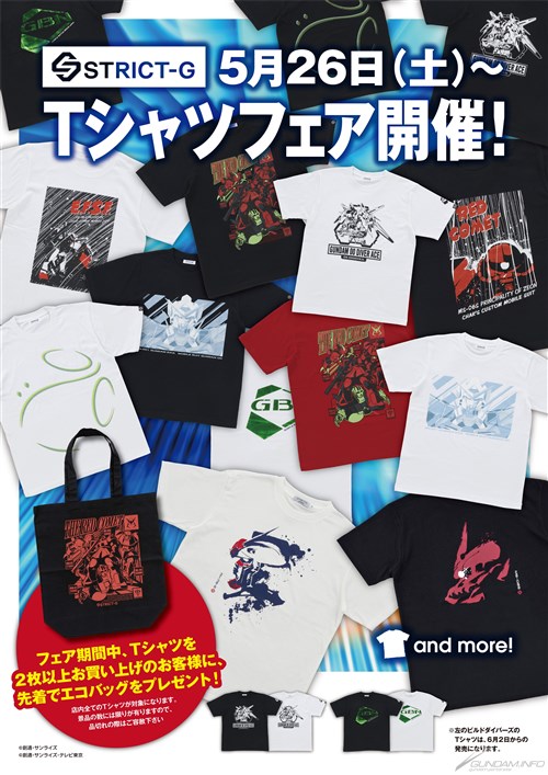 ガンダムの世界観を取り入れたアパレルショップ「STRICT-G」各店では、明日5月26日(土)より「Tシャツフェア」が開催される。