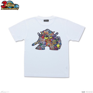 今回公開されたアイテムは、SDガンダムの産みの親である、横井孝二さんによって監修・プロデュースされた「SDガンダム 30周年記念×横井孝二 プロデュースTシャツ」と「SDガンダム 30周年記念×横井孝二 30thTシャツ」の2種。「プロデュースTシャツ」はブース内で先行展示され、「30thTシャツ」は先行販売が行われる。
