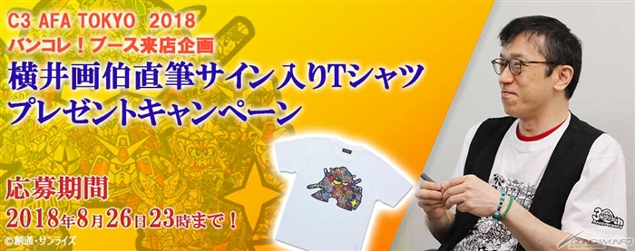 「C3AFA TOKYO 2018」イベント当日、「バンコレ!」ブースに足を運ぶと、その場で応募できるキャンペーンに参加できる。参加した人の中から、抽選で1名に“横井孝二先生直筆のサイン入りTシャツ”がプレゼントされるので、ぜひとも「バンコレ!」ブースに立ち寄ってみよう。