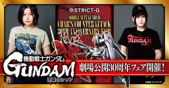 ガンダムの世界観を取り入れたアパレルショップ「STRICT-G」各店では、明日9月22日(土)より「『機動戦士ガンダム 逆襲のシャア』劇場公開30周年フェア」が開催される。