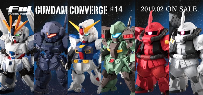 精密なディテールを“コンバージ=収斂”した食玩フィギュア「FW GUNDAM CONVERGE」シリーズの第14弾が、2019年2月に発売されることが決定した。全6種、価格は各500円(税抜)。