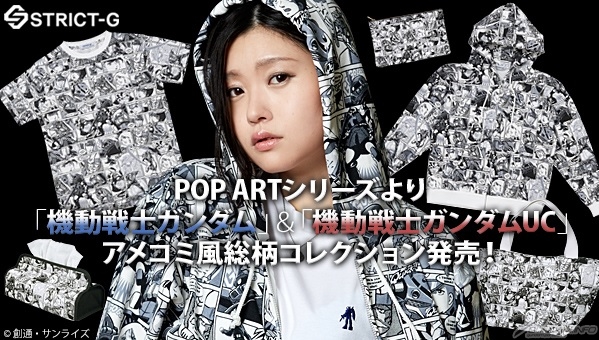 ガンダムの世界観を取り入れたアパレルショップ「STRICT-G」では、POP ARTシリーズのグラフィックをベースにした「『機動戦士ガンダム』&『機動戦士ガンダムUC』アメコミ風総柄コレクション」が、10月27日(土)より発売される。