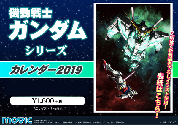 キャラクターグッズを制作するムービックより「機動戦士ガンダムシリーズ カレンダー2019」が、全国書店、アニメイトなどにて販売中だ。A2サイズ、価格は1,600円(税抜)。