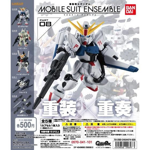 武装によるシルエット変化をテーマとした「MOBILE SUIT ENSEMBLE」シリーズの第8弾は、全国の玩具売場などのカプセル自販機にて12月第4週より発売される。価格は1回500円(税込)。