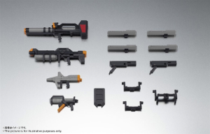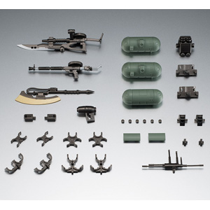 ジムの代表的な装備であるビーム・スプレーガンの、本体が大型化されたものとセンサーを大型化した2種類に加え、大型携行兵器のレール・キャノン、8連装ミサイルポッド付レール・キャノンのほか、組み換えにより複数の形態再現が可能なミサイル・ランチャー、主に狙撃系の機体に有用な小型シールドをセット。量産機に個性を与える装備群となっている。