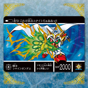 オールキラのカード64種に加え、カードを収納する箔押しバインダー、新ストーリーの解説や設定資料および新ストーリーを描いた漫画を掲載したブックレットを同梱した豪華セット。「騎士シャインガンダム」をはじめとする勇者たちや、「戦神機キングオブハート」、「デビルドラグーン」、「暗黒卿マスターガンダム」など人気キャラたちが新規描き下ろしイラストとなっているほか、新規サイドストーリーも収録予定。