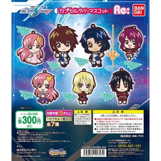 『機動戦士ガンダムSEED DESTINY』よりシン・アスカやレイ・ザ・バレル、キラ・ヤマト、アスラン・ザラな7人のキャラクターのカプセルラバーマスコットが、装いも新たに登場。