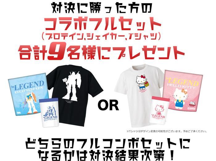 「ガンダムプロテイン」「ハローキティプロテイン」どちらのパッケージがInstagramに投稿されるかを競い合います。