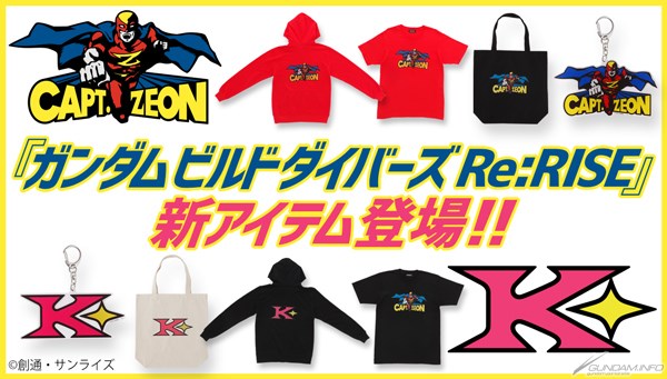 『ガンダムビルドダイバーズRe:RISE』アイテムは、ジップパーカーとTシャツ、トートバッグ、アクリルチャーム、ダブルクロスミニタオルが登場。