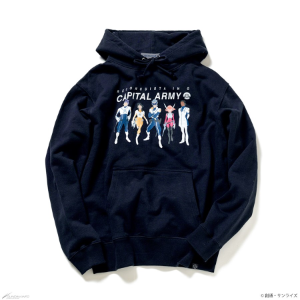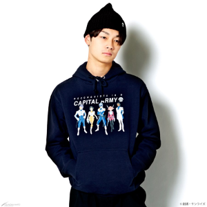 Tシャツは、作風からインスパイアされた、POPなカレッジ風ナンバリングデザインのモビルスーツ柄3種で、パーカーは、キャピタル・アーミィと海賊部隊のメンバーがグラフィカルに表現された2種で、それぞれ展開される。