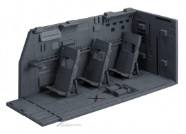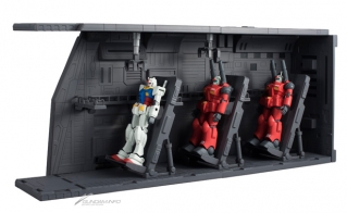 また、オプションパーツとしてMSを固定するハンガーが3個付属。MSアーム使用状態とMSの搭乗状態・リクライニング状態に加え、TVアニメ版と劇場版それぞれのシチュエーションを再現できるほか、HGUCシリーズをはじめ、「ビルダーズパーツ」や「ビルダーズパーツHD」などを組み合わせることで『機動戦士ガンダム』の世界感をさらに広げてジオラマ作成を楽しむことができる。