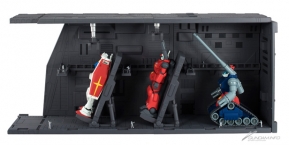 また、オプションパーツとしてMSを固定するハンガーが3個付属。MSアーム使用状態とMSの搭乗状態・リクライニング状態に加え、TVアニメ版と劇場版それぞれのシチュエーションを再現できるほか、HGUCシリーズをはじめ、「ビルダーズパーツ」や「ビルダーズパーツHD」などを組み合わせることで『機動戦士ガンダム』の世界感をさらに広げてジオラマ作成を楽しむことができる。