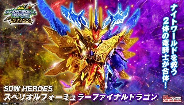 『SDガンダムワールド ヒーローズ』の外伝プロジェクト「SDガンダムワールド ヒーローズ THE LEGEND OF DRAGON KNIGHT」より、スペリオルストライク フリーダムドラゴンとオルタナティブジャスティス インフィニットドラゴンが融合した、伝説を超えた竜騎士スペリオルフォーミュラー ファイナルドラゴンが登場。