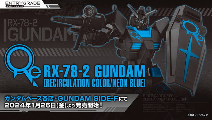 イベント限定アイテム「ENTRY GRADE RX-78-2 ガンダム[リサーキュレーションカラー/ネオンブルー]」が、1月26日(金)にガンプラ総合施設「THE GUNDAM BASE」各店と福岡・GUNDAM SIDE-Fで発売される。価格は1,100円(税込)。