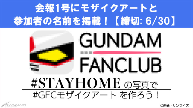 公式アプリ「ガンダムファンクラブ(GFC)」では、「みんなで作るモザイクアート」の投稿を受付中だ。