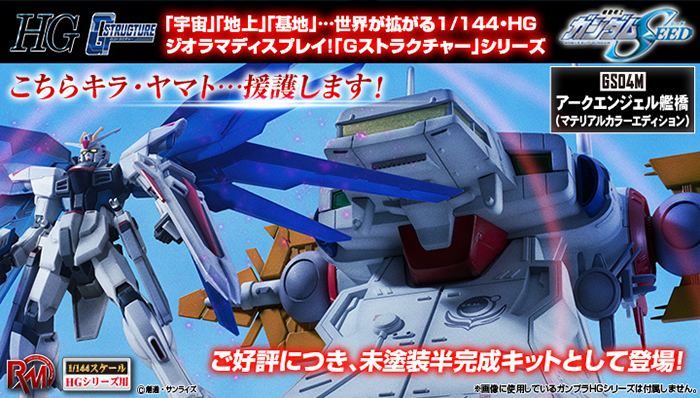 1/144ガンプラHGシリーズを気軽にディスプレイし、世界観を楽しめる「Gストラクチャー」シリーズに、『機動戦士ガンダムSEED』より「アークエンジェル」艦橋モデルが、お求めやすい未塗装半完成キットとして再登場。ガンプラと組み合わせることで、思いのままのジオラマディスプレイを楽しむことができる。