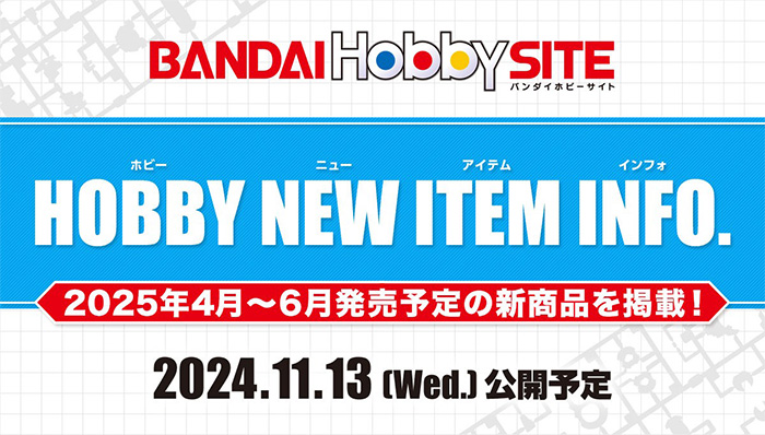 2025年4月から6月にかけて発売される、プラモデルの新商品情報を掲載する「HOBBY NEW ITEM INFO.」が、11月13日(水)にバンダイホビーサイトにて公開される。