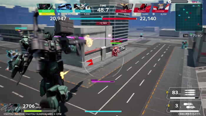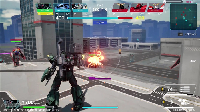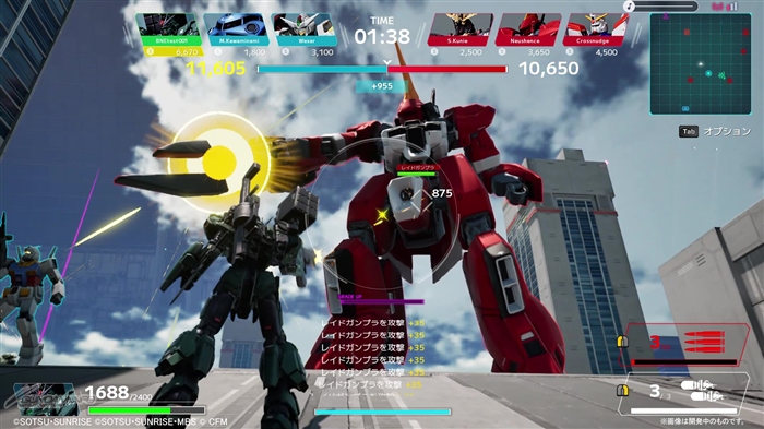 「3on3 バトル」は、その名の通りプレイヤー同士による3対3のチームバトル。ユーザー同士のチーム戦にくわえ、マップには敵コンピュータ機体も登場する 三つ巴の変則マッチと言える。対人戦以外にも、操作に習熟するためのトレーニングモードも用意されている。