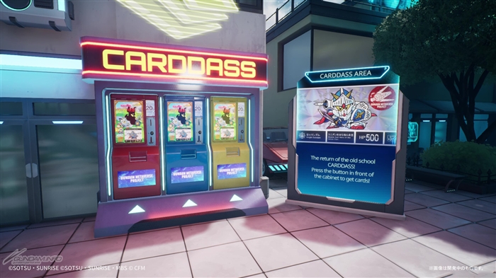 メインロビーに設置されているカードダス自販機。ナイトガンダムの第1弾と第2弾が入手できるなど、収録カードは拡充されている。さらに、カードダスバインダーの機能も実装されているので、ぜひコレクションしてみよう。