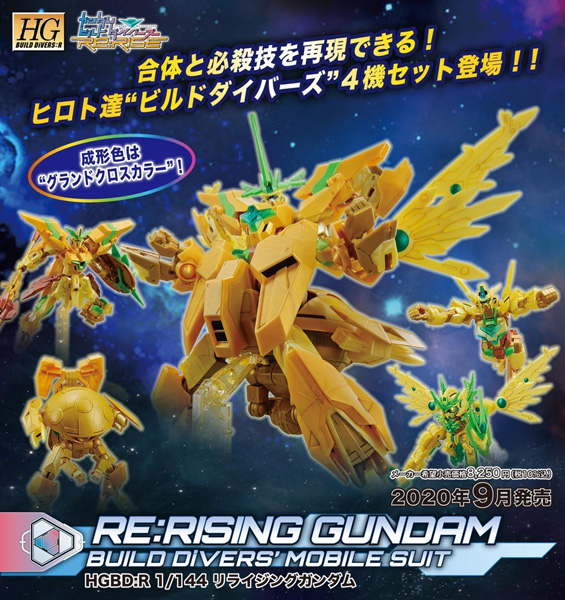 8月27日(木)にいよいよ最終回を迎える『ガンダムビルドダイバーズRe:RISE』より、ユーラヴェンガンダム、ガンダムイージスナイト、エクスヴァルキランダー、ウォドムポッドが合体した「リライジングガンダム」が、必殺技使用時「グランドクロスカラー」で登場。