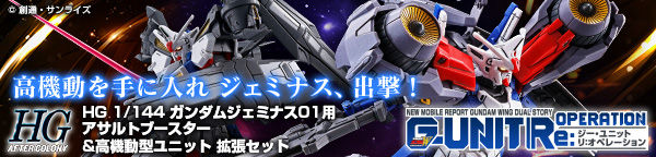 さらに、本アイテムと組み合わせて楽しめる「HG ガンダムジェミナス01用アサルトブースター&高機動型ユニット 拡張セット」の追加予約受付も同時にスタートしているので、こちらもお見逃しなく。
