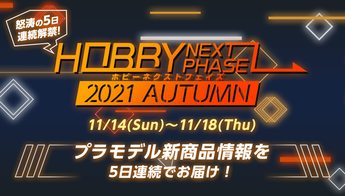 なお、「HOBBY NEXT PHASE 2021 AUTUMN」は、プラモデルの新商品情報が5日連続で届けられる。