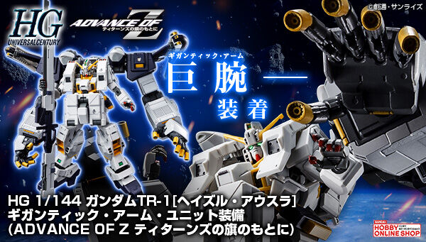 「ADVANCE OF Ζ ~ティターンズの旗のもとに~」より、ガンダムTR-1「ヘイズル・アウスラ」に、巨大アーム式の攻撃ユニットを組み合わせた武装強化プラン「ギガンティック・アーム・ユニット装備」がHGシリーズで登場。