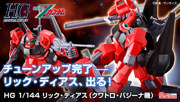 『機動戦士Ζガンダム』より、クワトロ・バジーナ大尉が搭乗した赤いリック・ディアスを「HGUC リック・ディアス」をベースに、より設定画に合わせた形状にアップデートして立体化。