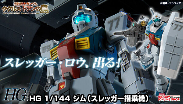 『機動戦士ガンダム ククルス・ドアンの島』より、ホワイトベースに配備されたスレッガー・ロウ中尉が搭乗する「ジム」が、高い可動性能をもった最新HGフォーマットによる完全新規造形で立体化。