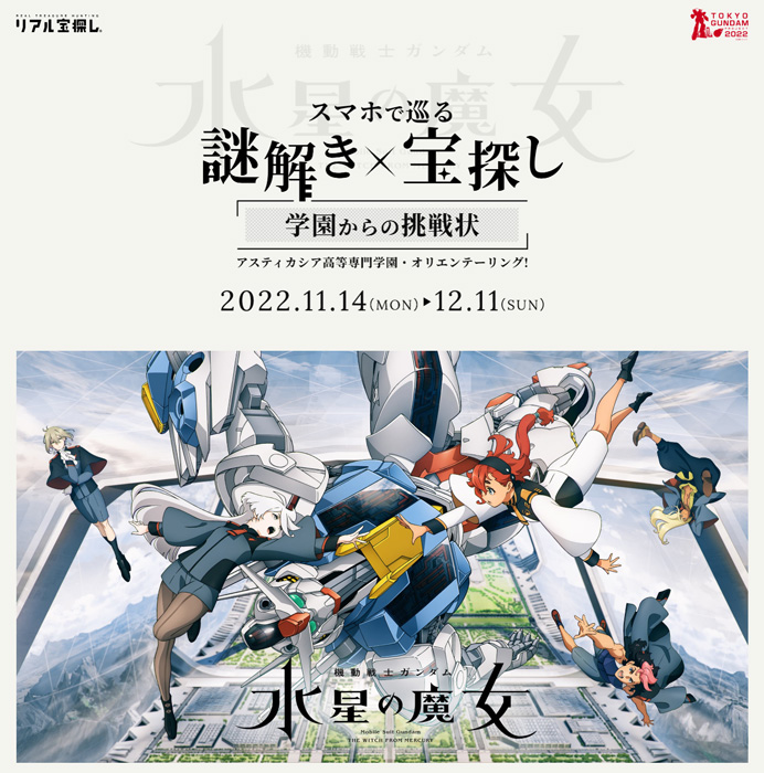 『機動戦士ガンダム 水星の魔女』をテーマにした謎解き×宝探しイベント「学園からの挑戦状 アスティカシア高等専門学園・オリエンテーリング」が、本日11月14日(月)より開催される。