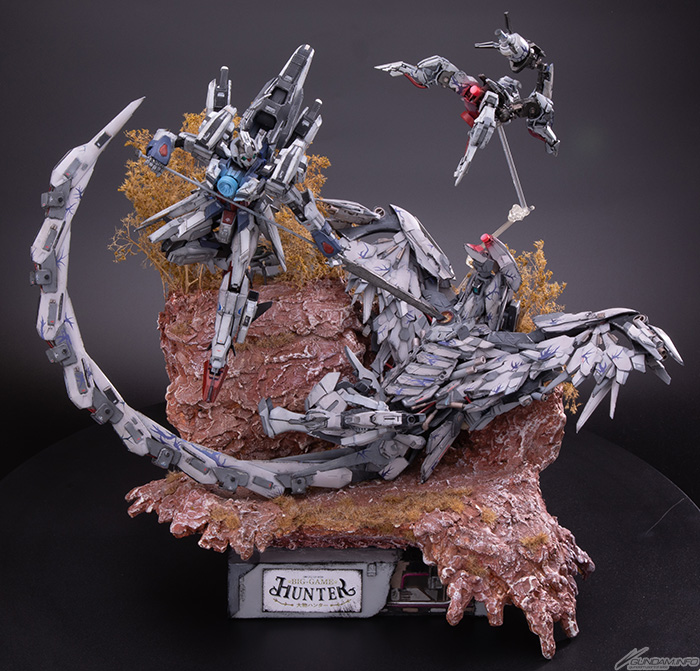 「HG ネオジオング」をベースに作られている本作品は、写真から迫力が伝わりにくいが、大きなキットにも関わらず、大変丁寧な工作技術が見て取れる。さらに、実際の大きさ、スケールを感じさせるような塗装が施されていることが、チャンピオン受賞の決め手になった。