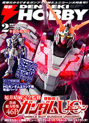 |  | 電撃ホビーマガジン2月号 冬休み特大号 発売日:2007年12月25日 特別定価(税込):1,050円 表紙:RX-0ユニコーンガンダム (1/100 バンダイ改造)/岩田トシオ GNY-001 ガンダムアストレア (1/144 バンダイ改造) |