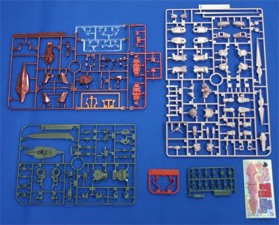 ▲まずはパーツチェックから。ガンプラ作りの基本(らしい)ですよ!全部で5枚のランナーと、シールが入っています。