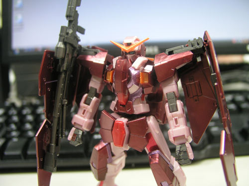 ▲残念ながら剣としてもたせることはできないけど、腰の後ろにはGNビームサーベルもちゃんと装備してます。