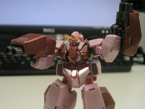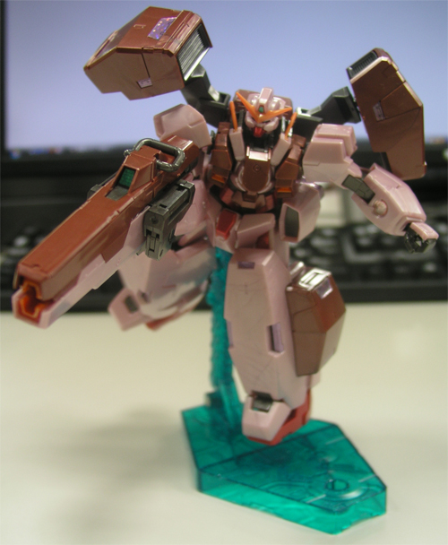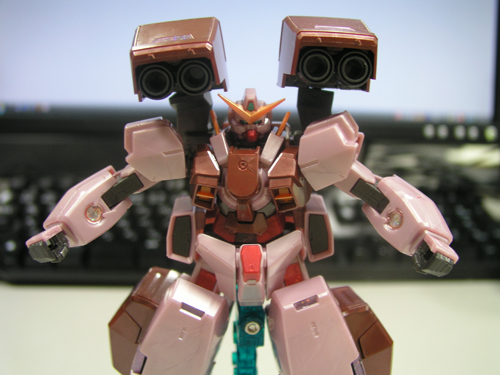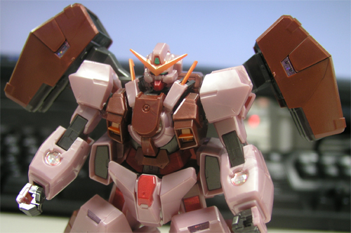 ▲肩のGNキャノンがいっそう機体を大きく見せます。