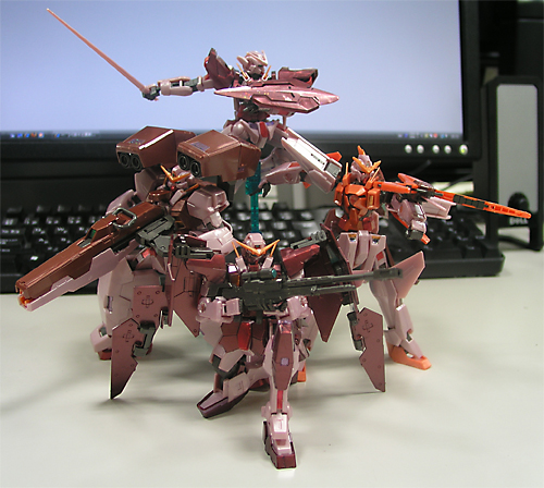 トランザムモードの4体の魅力をお伝えすることができたでしょうか。ノーマル状態のカラーリングでもカッコいいガンダムですが、素材の色でGN粒子のカラーをまとった、この「グロスインジェクションバージョン」もまた違った魅力が味わえると思います!