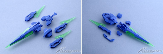 GNソードIVフルセイバーは大型剣としての機能はもちろん、パーツそれぞれに機能があり、組み替えることでさまざまな武装にチェンジすることが可能となっています。3丁のGNガンブレイドはブレイドとガンモードに変形、さらに連結して両刃モード(ツインエッジ)にすることができます。もちろん、各部の機構を活かして自分だけのオリジナル武器を製作することも可能な、拡張性の高い付録となっています。