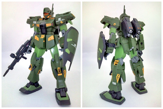 ジム改を持っていなかったのでジムカスタムでワグテイルを組み付け、ザク風カラーにしてバーニアをオレンジ色にしたらジムストライカー風になってしまいましたが、これはこれで良い感じになったと思っています。