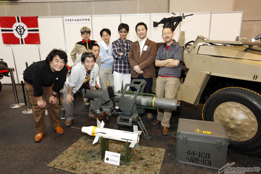 ▲ラコタとリジーナの前に並ぶ『機動戦士ガンダムMS IGLOO』シリーズの今西隆志監督(一番左)とメカデザイナーの山根公利氏(一番右)、そして「プラモデルを1/1でつくる」会のメンバーで記念撮影。