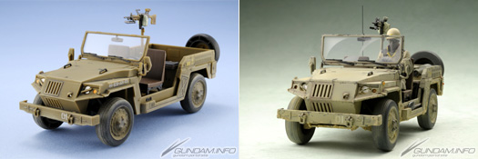 『機動戦士ガンダム MS IGLOO 2 重力戦線』などに登場する、地球連邦軍で広く運用された「M72 1/2tトラック ラコタ」と、ジオン公国軍の軽機動車「サウロペルタ」。 有志による「プラモデルを1/1でつくる会」が、サンライズの全面協力のもと1/1スケールで製作したこの2輌の“実車”写真集が、いよいよ7月30日(土)に発売される。