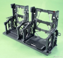臨場感あるディスプレイに最適なシステムベースが登場!背面パーツには、左右伸縮機能と傾斜ギミックを搭載するほか、底面となるフットレストは装着・非装着と、伸縮を選択式で再現可能!また、サイドには別パーツのフックを組み合わせることで、高さ調節できる武器ラックを追加できる!