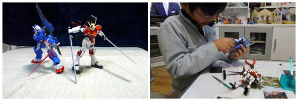 私の影響で次男(勘太・8歳)、甥(陸・9歳)も楽しくガンプラにハマっています。HPで企画を知り元旦に買ったガンプラでの応募です。写真中のストライク、フリーダム、クシャトリヤは子ども達の作品です。製作にあたって微妙な所もありますが、あえて私は手をかさず2人で仕上げさせてみました。小学2年、3年ですがなかなかの感じだと思います。PS:RGは私が作ってみました。