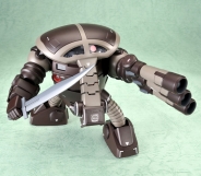 特徴的な右腕は近接戦用にゾゴックタイプの腕に換装され、アクション用の装備としてヒート・ナイフが付属!左腕のキャノンの内部モールドは大口径ロケット弾タイプに変更されている。
