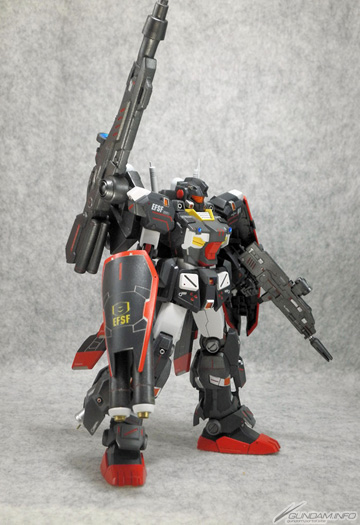 「ブラックサンダー隊」…ジム系の開発・評価・実戦部隊。 実戦配備されたとかフレームまでしか製造されなかったなど噂でしかなかった「ガンダム7号機」のフルアーマー仕様の設計書がブラックサンダー隊にもたらされた。 その設計を基にさらに高機動化・重装備化を進めた。 だがすでに戦争末期。 またも計画のみで終わると思われた。 しかし独立部隊でもあるブラックサンダー隊は独自にアナハイムエレクトロニクスと製造を進め、秘密裏に完成させた。 もちろん実戦配備された記録はないがデラーズ紛争の折、アナハイムの要請によりガンダム奪還の隠密作戦をとっていたとの噂もあるが定かではない。
