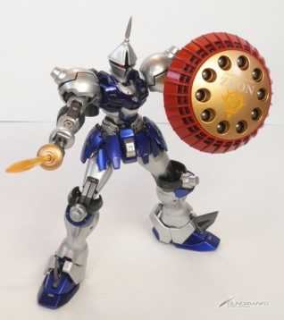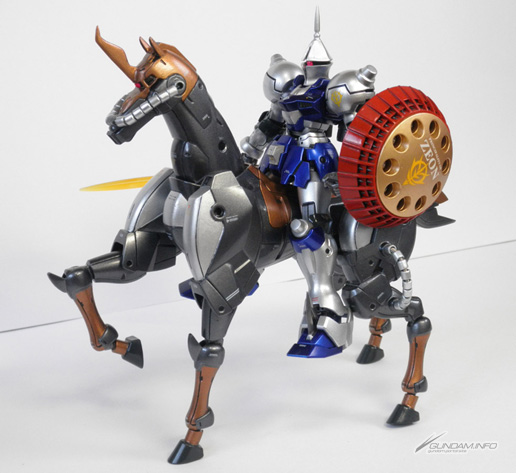 格闘性能に優れたギャンをさらに強力に した機体!モビルホースによるスピード戦法は一騎当千の強さを誇る。武器はビームサーベルとミサイルシールドのみ。だが抜群の機動性によりまったく敵を寄 せ付けないのだ。ツィマッド社のモビルスーツを活躍させたいという炎のような情熱が形になったガンプラ。その思いはバトルにおいて無敵の強さを引き出すと いう。全身がメタリック塗装であり、「銀色の流星」の呼び名で知られるという!