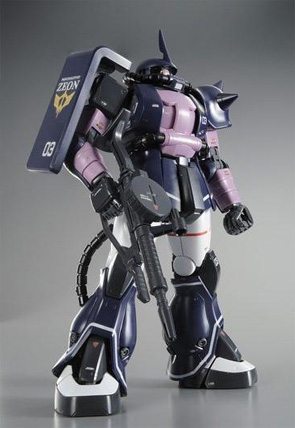 シャア専用ザクと同型の形状に、黒い三連星の特徴的なカラーリングが施されているほか、特有のマークを再現した新規マーキングが付属!