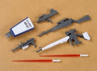 設定を再現する数々の武装が付属し、ロング・レンジ・ビームライフルとミドル・シールドは新規型となっている。