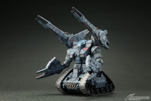 ハヤト専用機をC-109に置き換えすることなく、そのままガンタンクを運用し続けたならば、という想定での機体です。1年戦争末期、ジオンにも導入され始めたビーム兵器に対抗すべく、実体弾での運用であったガンタンクに、ロングレンジメガ粒子砲“アルティメス”を装備、長々距離後方支援用大型自走砲として、より特化発展させたものです。